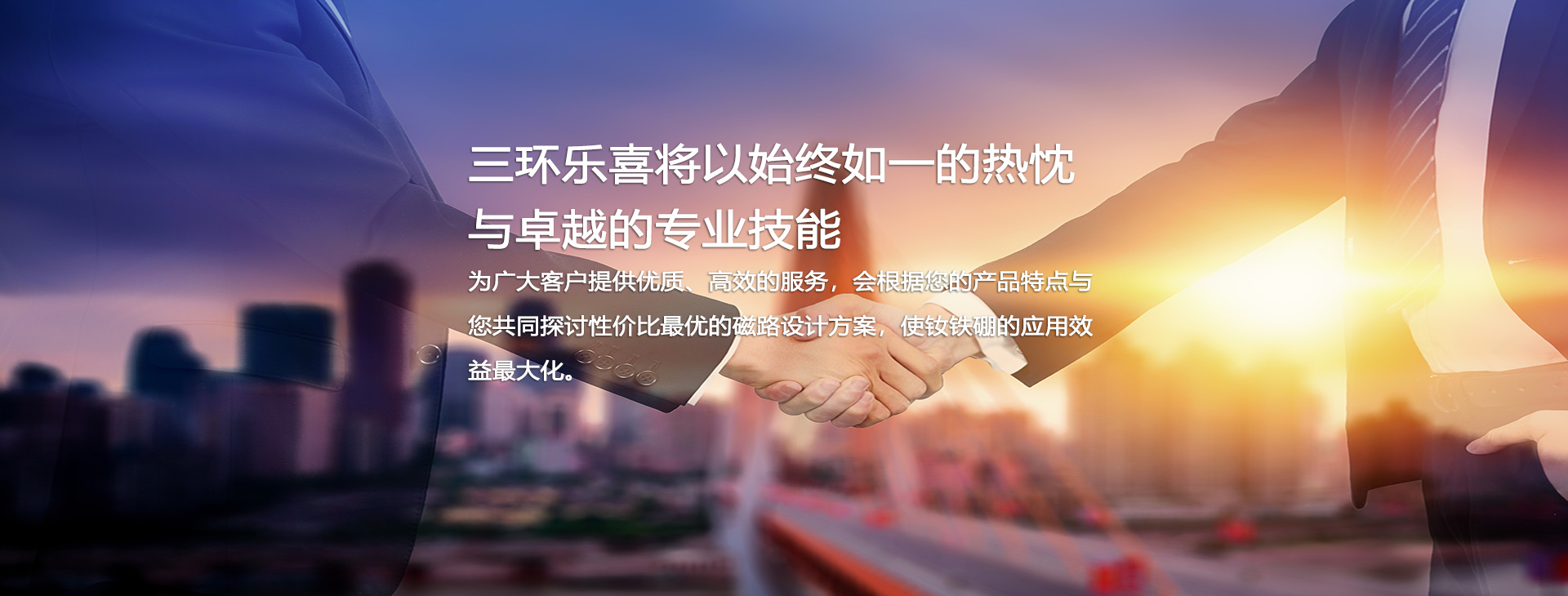 三環(huán)樂喜新材料有限公司,成立于1990年,控股股東中科三環(huán)(股票代碼:000970)為中國稀土永磁材料產業的代表企業、全球特大的釹鐵硼永磁體制造商之一。自成立以來,公司一直致力于研發(fā)、生產、銷售中、高品質燒結釹鐵硼,年生產能力超過6000噸,是中科三環(huán)的重要生產基地。